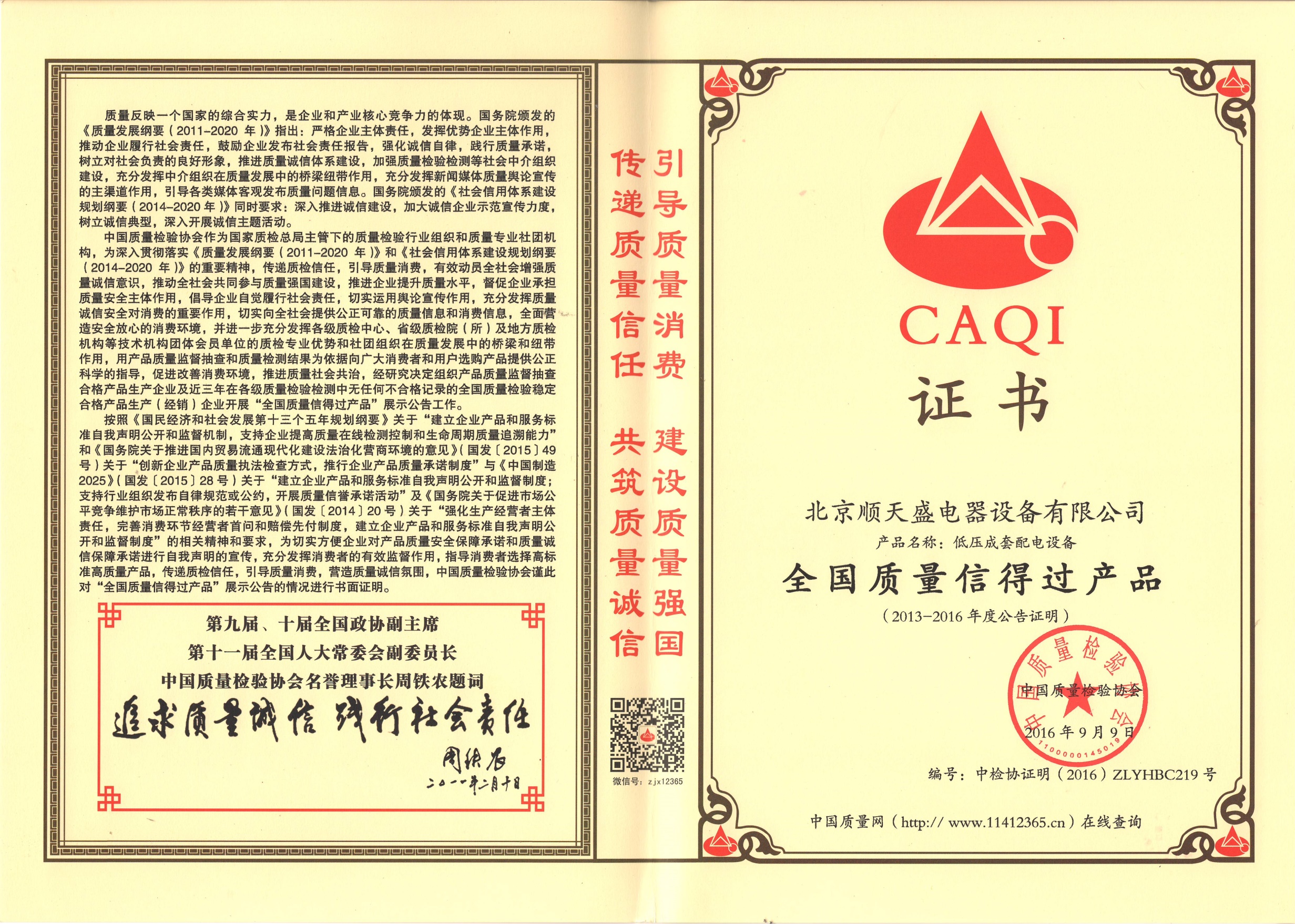 全國質(zhì)量信得過(guò)產(chǎn)品