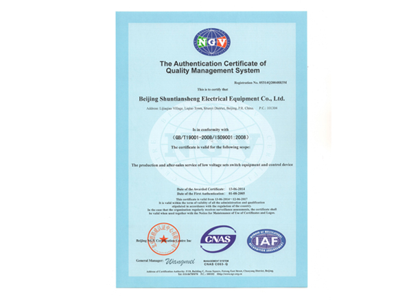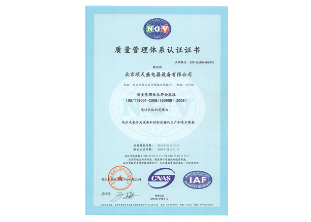 ISO9001-2008質(zhì)量管理體系認證證書(shū)-中文