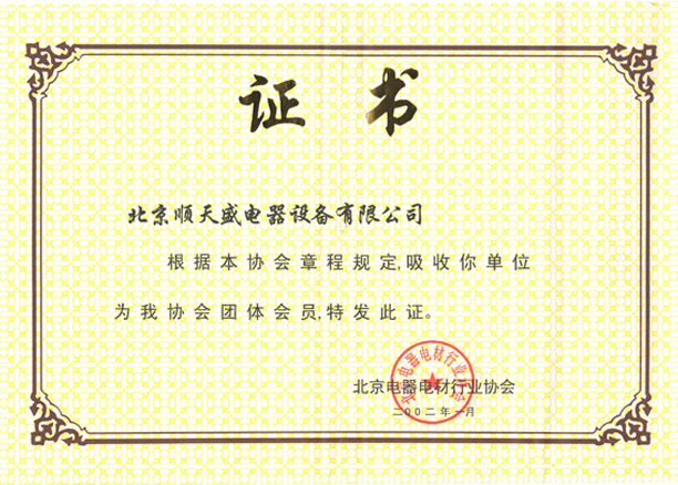 北京電器電材行業(yè)協(xié)會(huì )證書(shū)2002