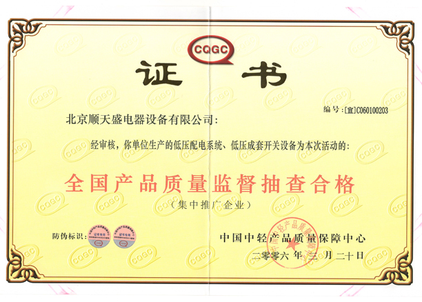 全國產(chǎn)品質(zhì)量監督抽查合格證書(shū)2006